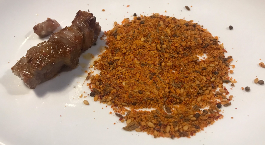 잘 구운 양꼬치는 소스에 찍어 먹으면