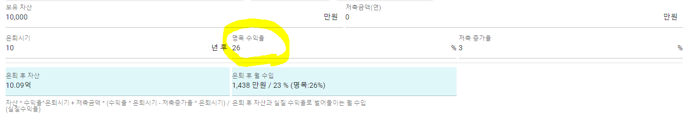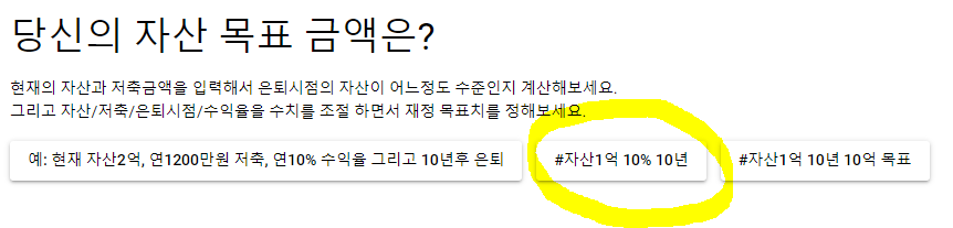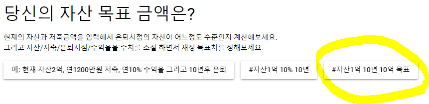 낙원 계산기 5. 자산 1억 10년 10억 목표