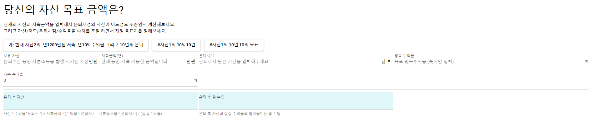 연 저축금액, 은퇴 시기, 수익률을 입력하시면