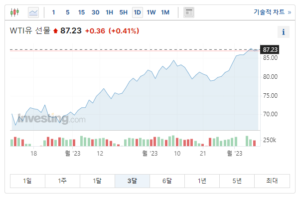 요즘 유가가 정말 많이 올랐습니다.
