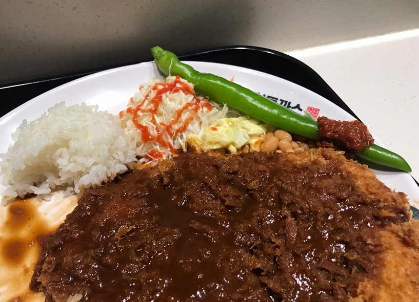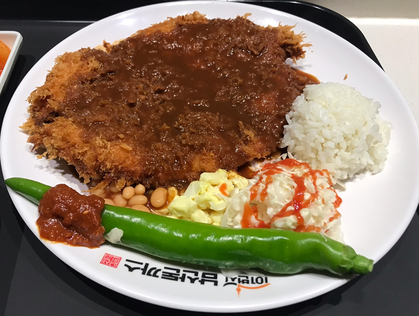돈까스와 고추가 같이 나오는 게 신기했습니다.