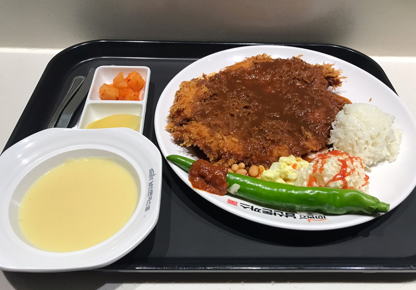 돈까스와 고추가 같이 나오는 게 신기했습니다.