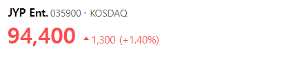 JYP Ent. 의 주가는 94,400원입니다.
