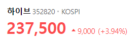 현재 하이브 주가는