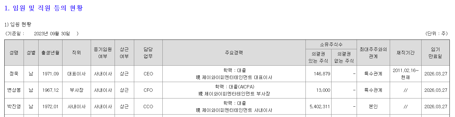 현재 JYP 주식을 5,402,311주를