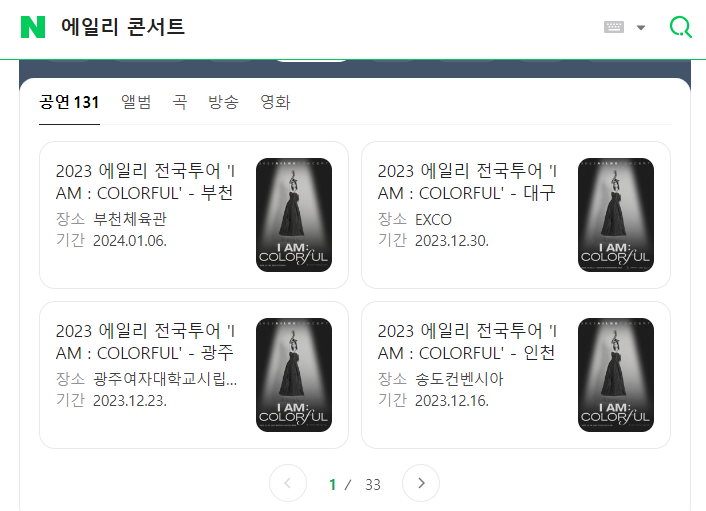 네이버에서 에일리 콘서트를 검색합니다.