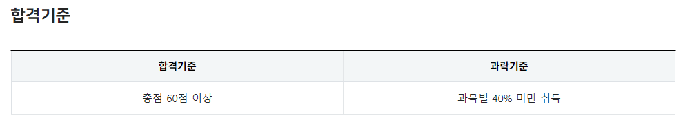 합격기준은 총점 60점 이상입니다.