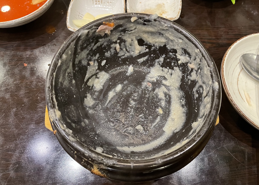 어느새 한 그릇을 뚝딱 해치웠습니다.