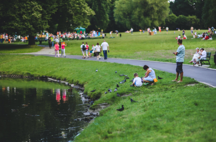 공원을 걸으면서 신나는 노래를 들으면 더 좋습니다.
