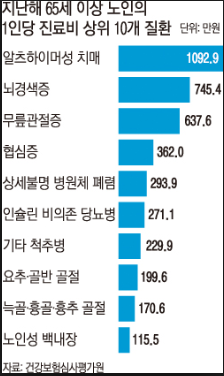 우리나라에서도 65세 이상 노인 1인당 진료비 상위 1위가 알츠하이머병이다.