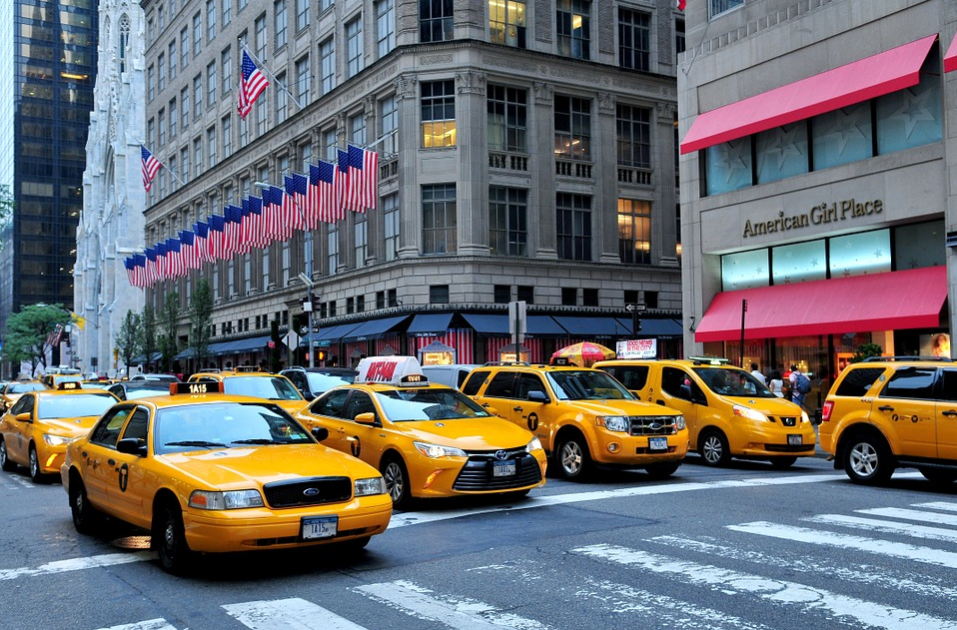 길거리에서 손을 들어 표현하면 택시를 탈 수 있다.