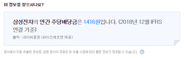 삼성전자는 주당 1,416원을 배당하였습니다.