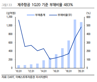 제주항공의 부채비율도 계속 증가하고 있다.