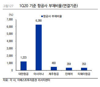 아시아나 항공의 부채비율은 6,000%가 넘는다.
