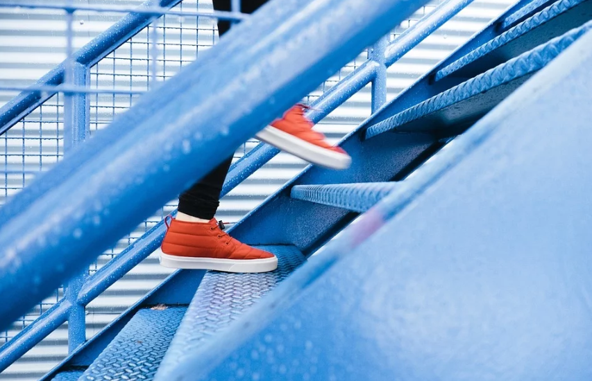 계단을 오르는 것도 좋습니다. 하지만, 내려올 때에는 반드시 엘리베이터를 이용해야 합니다.