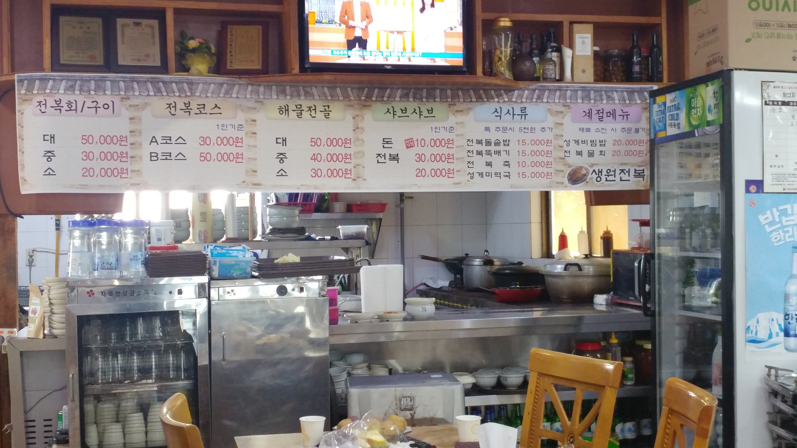 생원전복 메뉴판입니다.