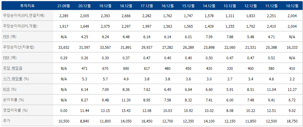 3) 10년치 투자지표를 확인합니다.