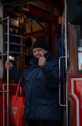 기차에서 옆자리에 앉은 승객과 수다를 즐긴다.