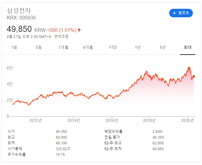 삼성전자의 가치는 꾸준히 성장하고 있습니다.