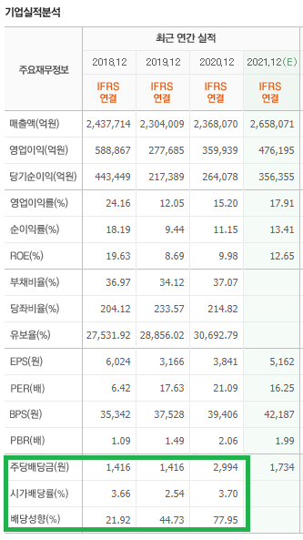 2020년 주당 2,994원의 배당금을 주주에게 주었습니다.