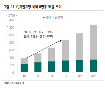 올해 비비고만두 매출이 1조원을 돌파할 거라 예상한다.