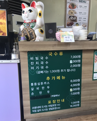 비빔국수, 잔치국수 7,000원
