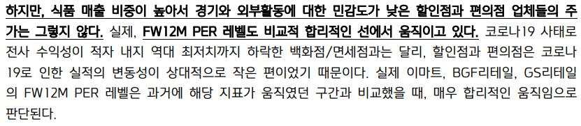 즉, 편의점은 다른 유통업체와 달리 코로나에 상대적으로 영향이 적었습니다.