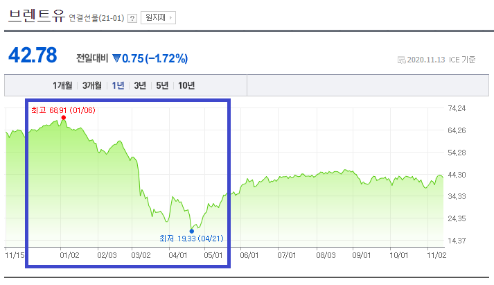 그런데, 코로나 때문에 유가가 폭락했다.