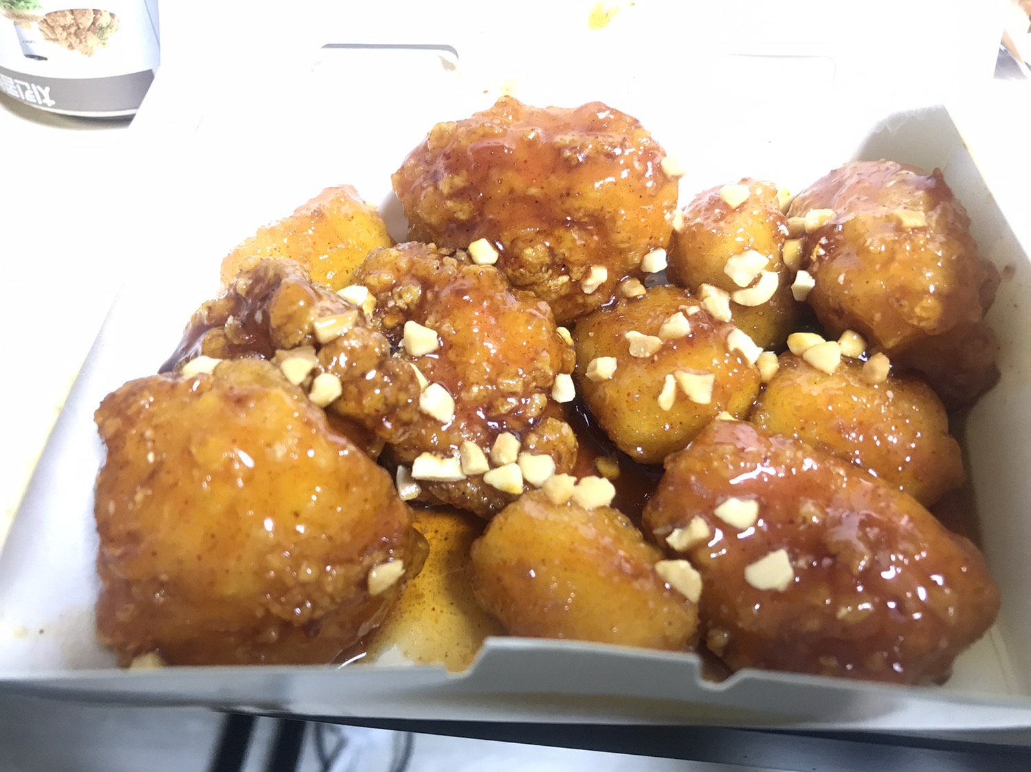 닭강정과 떡이 같이 들어있습니다.