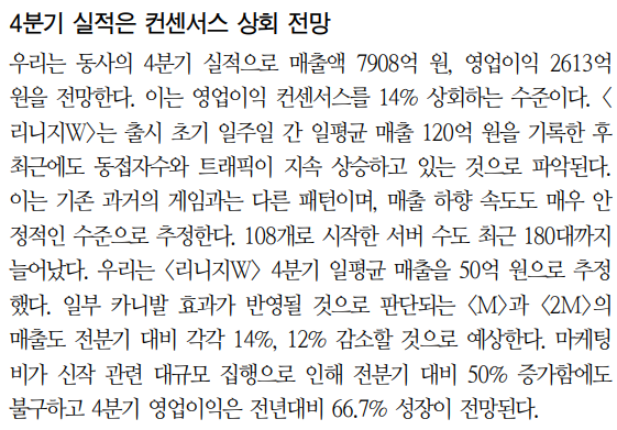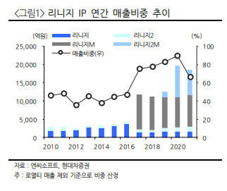 리니지의 매출은 꾸준히 증가하고 있습니다.