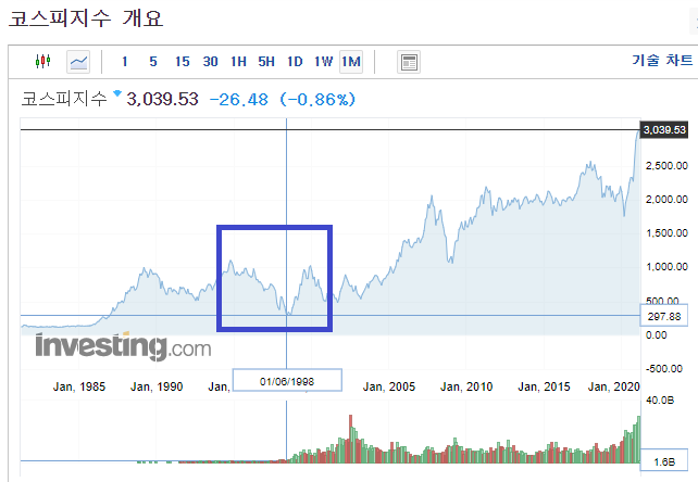 20여 년 전 IMF 위기 때 우리나라 투자자들이 한국 주식을 팔고 있을 때,