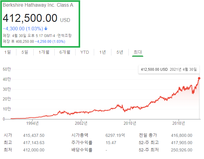 버크셔 해서웨이 클래스 A 주가는