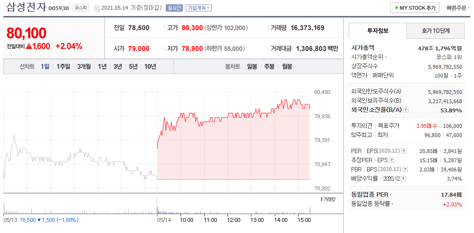 시가총액은 약 478조에 이릅니다.