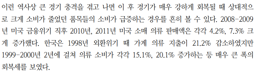 자연스럽게 의류 및 신발 판매가 급감하였습니다.