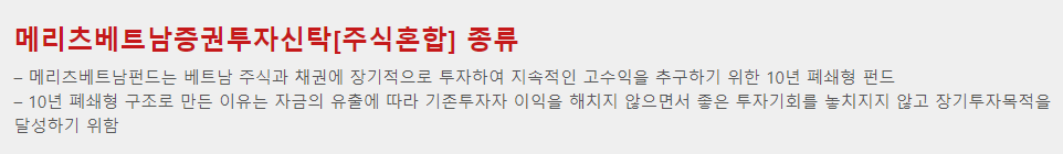 메리츠베트남증권투자신탁[주식혼합]은 10년 폐쇄형 펀드입니다.