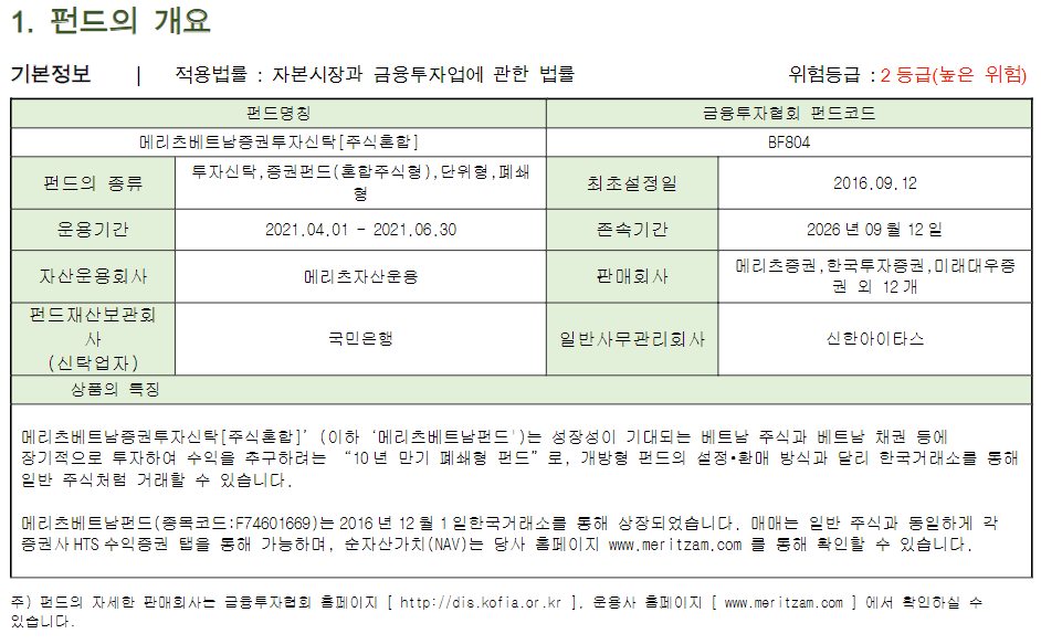 폐쇄형 펀드 1. 메리츠베트남투자신탁