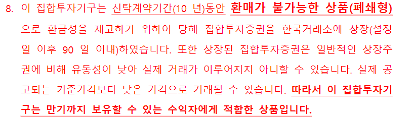 폐쇄형 펀드는 일반 상장주권에 비해 유동성 낮아서