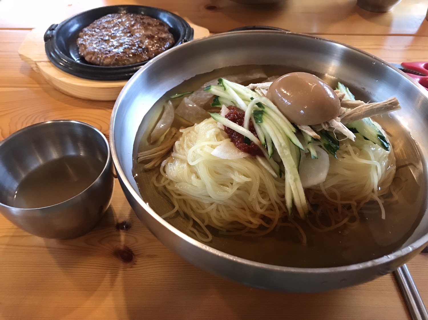 밀면을 먹을때 온육수도 빠질 수 없습니다.