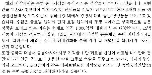오리온은 맛있는 과자를 만드는 회사입니다.
