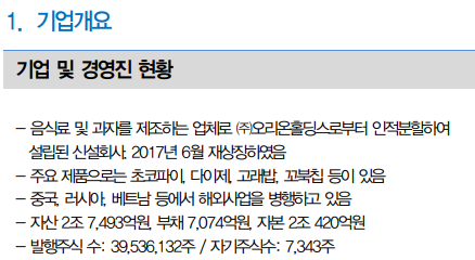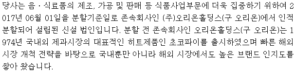 오리온은 맛있는 과자를 만드는 회사입니다.