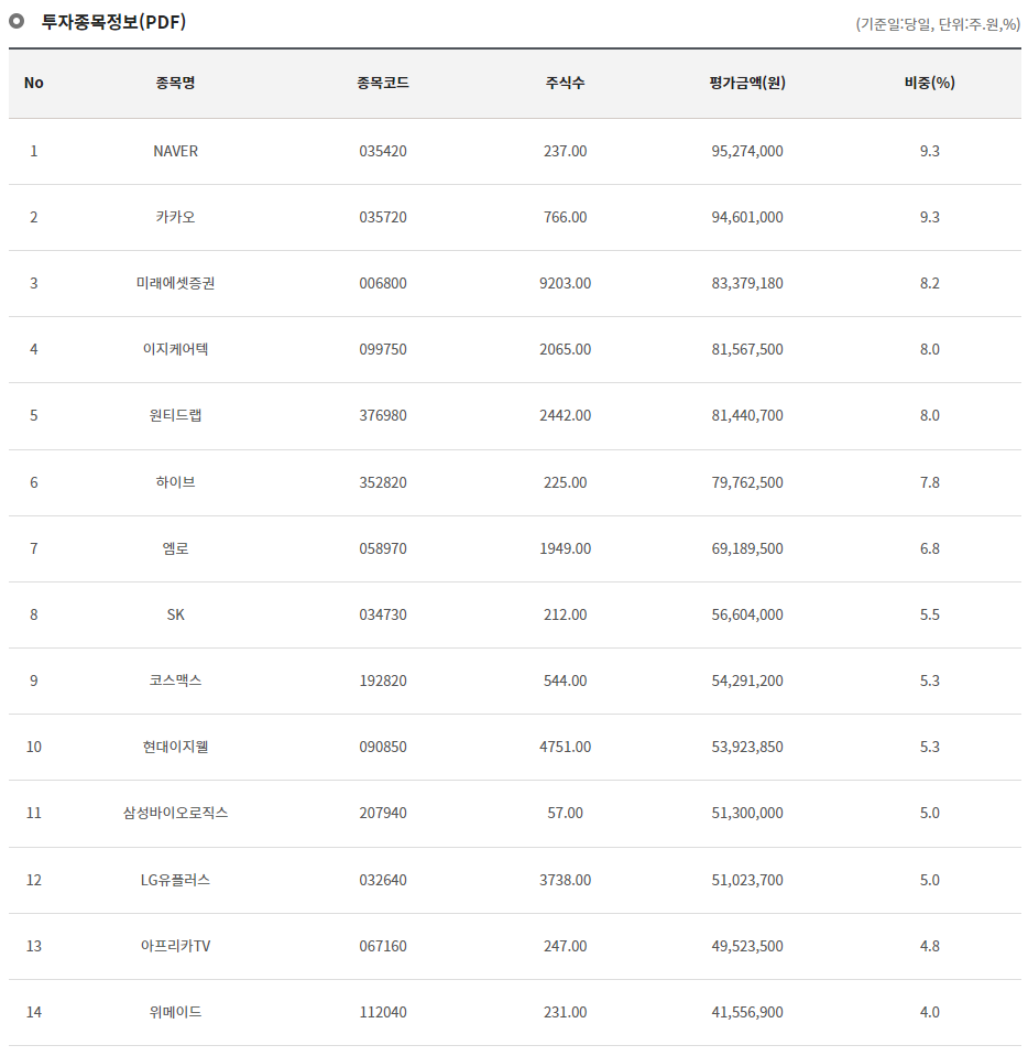 코리아 플랫폼 액티브ETF 2. 보유 기업