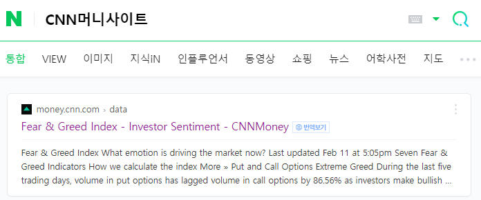 공포와 탐욕지수 (Fear & Greed Index) 2. CNN머니 사이트