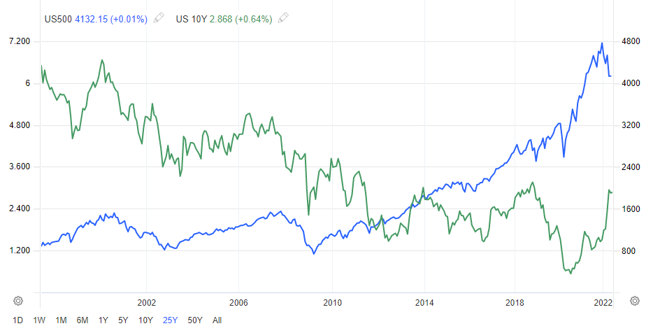 2) 2008년 금융위기 이후 금리는 하락하고, 주가는 올라갑니다.