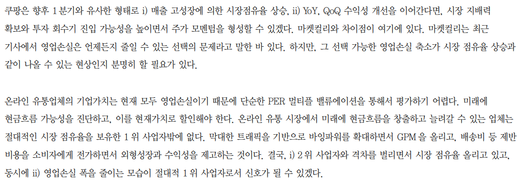 두 번째 이유는 쿠팡 실적이 좋지 않습니다.