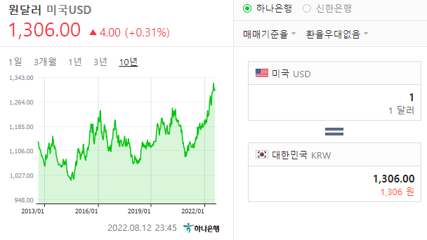 환율이 1,300원을 넘은 경우는 두 번 있습니다.