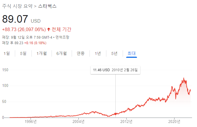 코카콜라 주식을 한 주를 샀더라면,